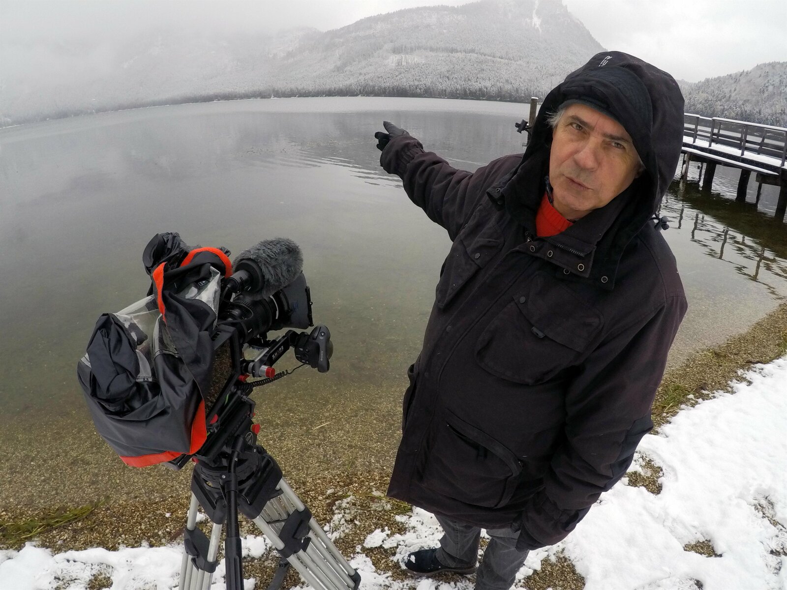 Regisseur Alfred Ninaus bei den Dreharbeiten am winterlichen Altausseer See.Bild: © ORF/RANfilm/Richard Mayr