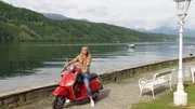 Moderatorin Sonja Kleindienst ist auf ihrer Reise mit der Vespa.Bild: © ORF