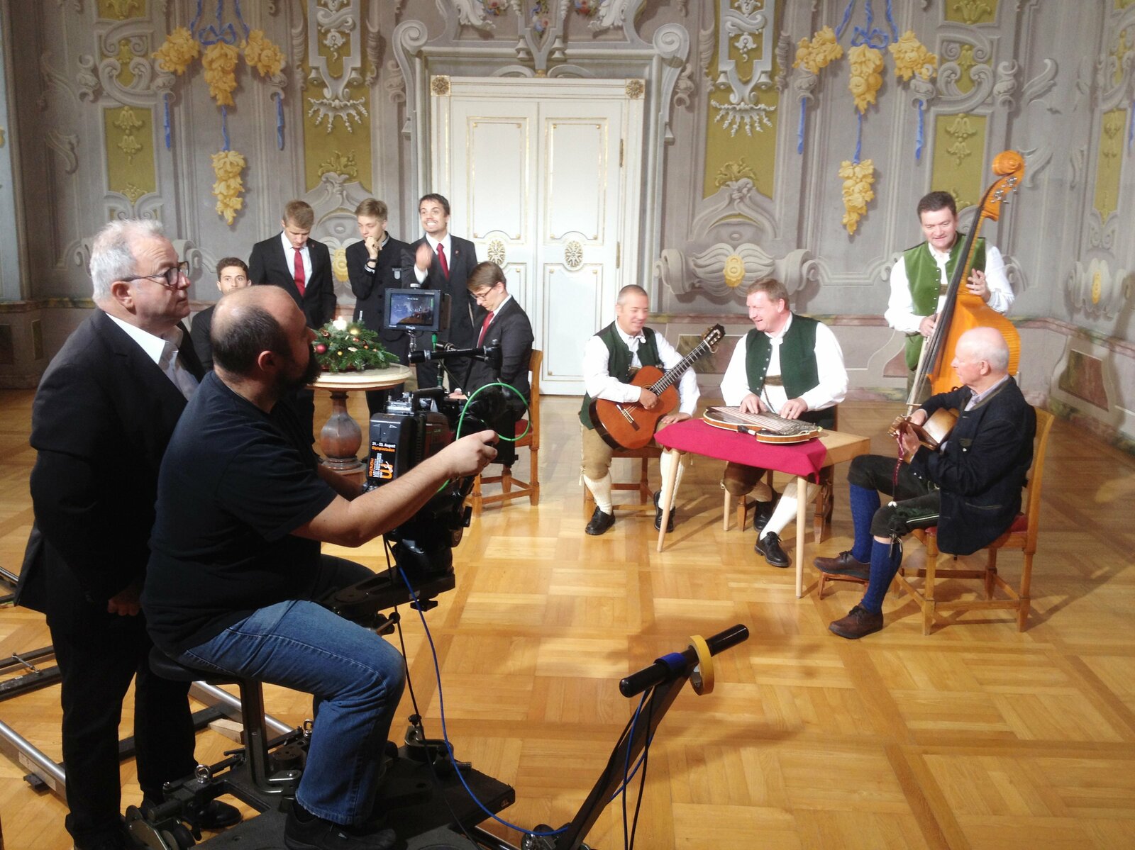 Stad is wordn - Weihnachten mit den St. Florianer SängerknabenORF-Redakteur Günther Hartl und Kameramann Lukas Kronsteiner bei den Dreharbeiten mit dem Männerensemble der St. Florianer Sängerknaben für „Erlebnis Österreich“.Bild: © ORF/Landesstudio Oberösterreich