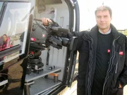 Gestalter Wolfgang Marecek vor den Flugaufnahmen vom Traunstein.Bild: © ORF