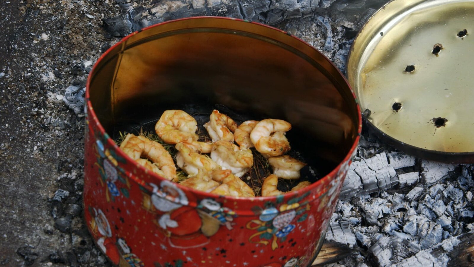 Archaisch Grillen - Garnelen in der Keksdose geräuchert.Bild: © ORF/ORF-OÖ