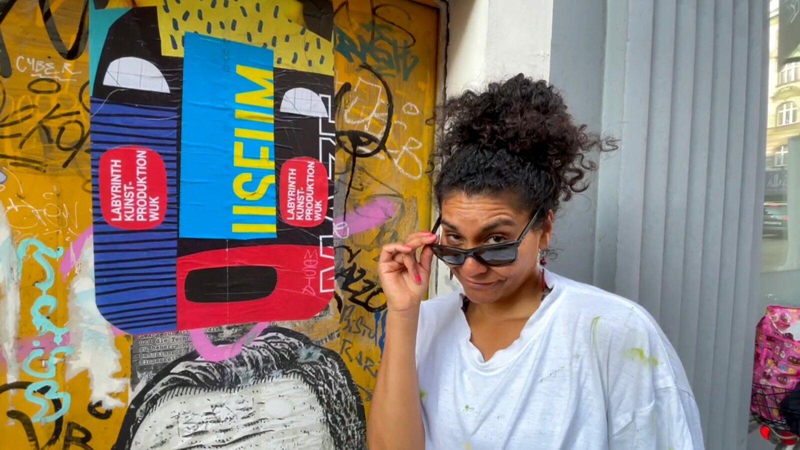 Papierkünstlerin Lym Moreno bastelt aus alten Plakaten bunte Gesichter - und klebt sie überall in Wien auf.Bild: © ORF