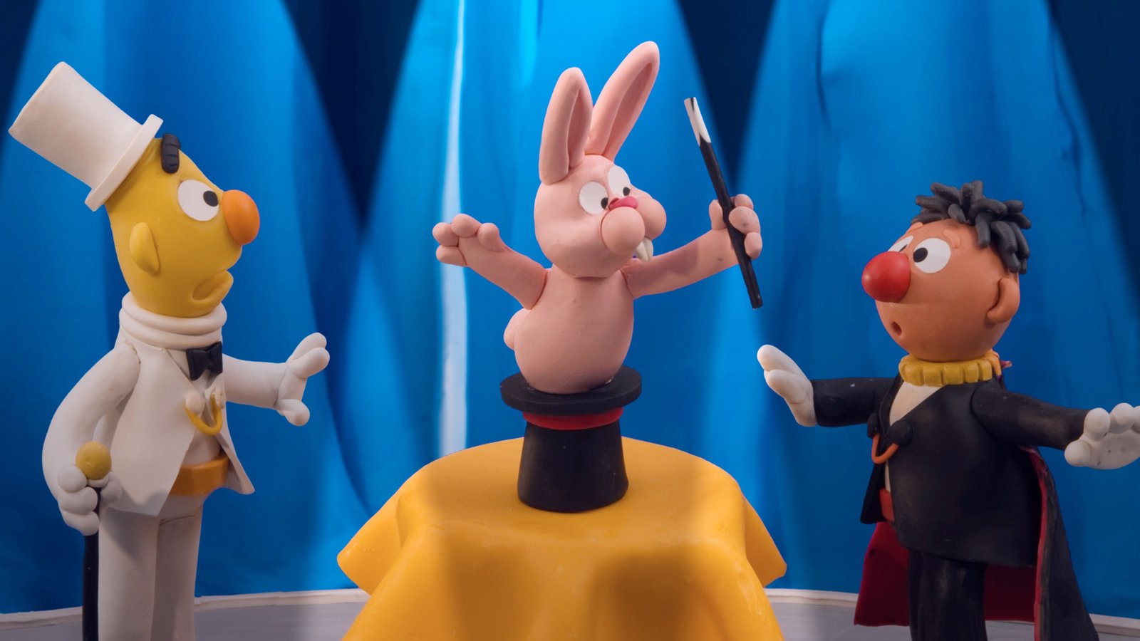 Die ZaubererPresto! Der Zauberhase hat den beiden großen Magiern Ernesto und Bertini den Zauberstab gestohlen!Bild: © NDR/Sesameworkshop