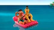 Die Erfindung des RadesErnie und Bert machen Urlaub auf Hawai. Auf ihrer Luftmatratze treiben sie auf das offene Meer hinaus...Bild: © NDR/Sesameworkshop