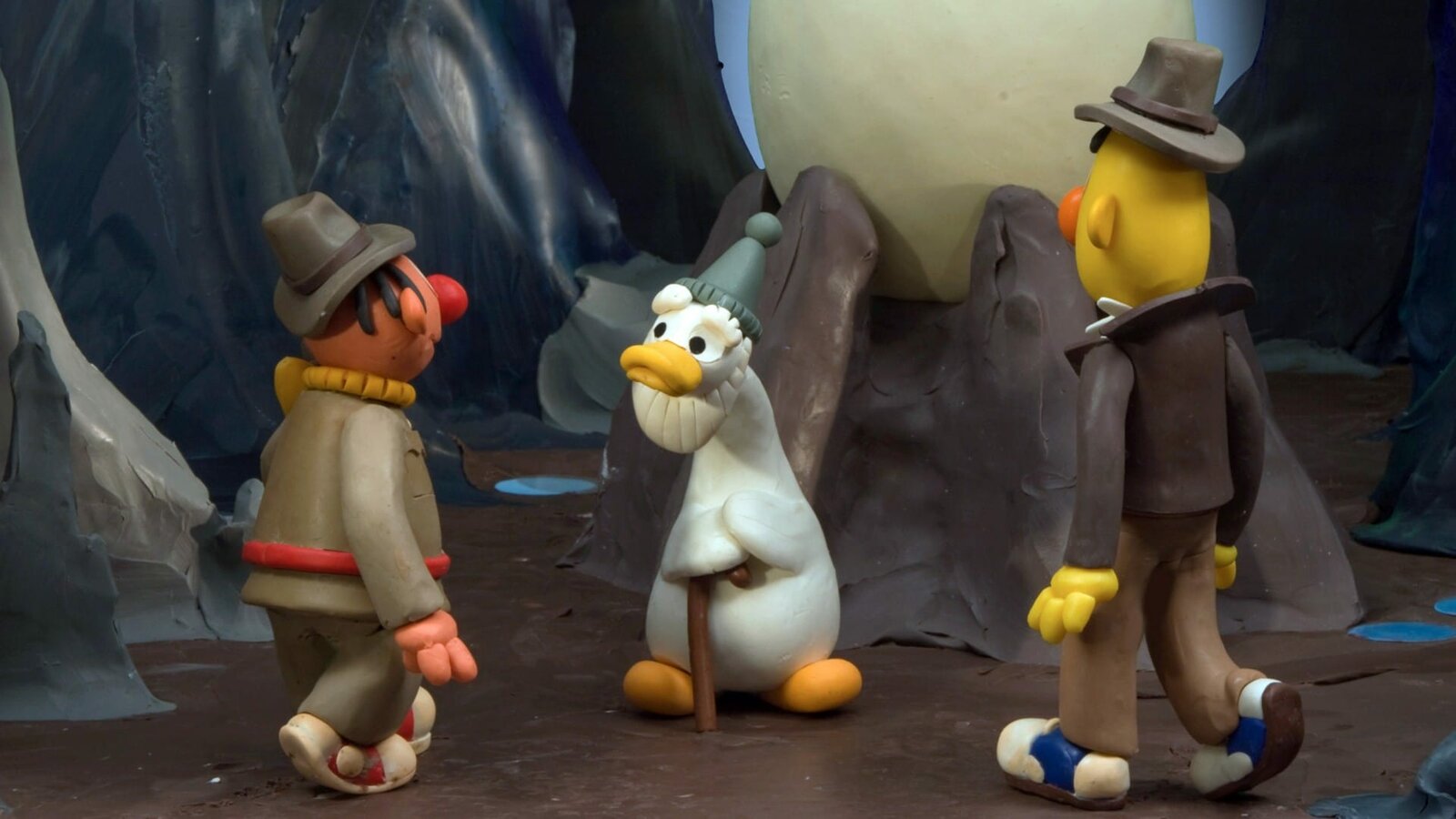Malle, die EnteErnie und Bert machen sich daran, das Geheimnis der mysteriösen Ente zu lüften.Bild: © NDR/Sesameworkshop