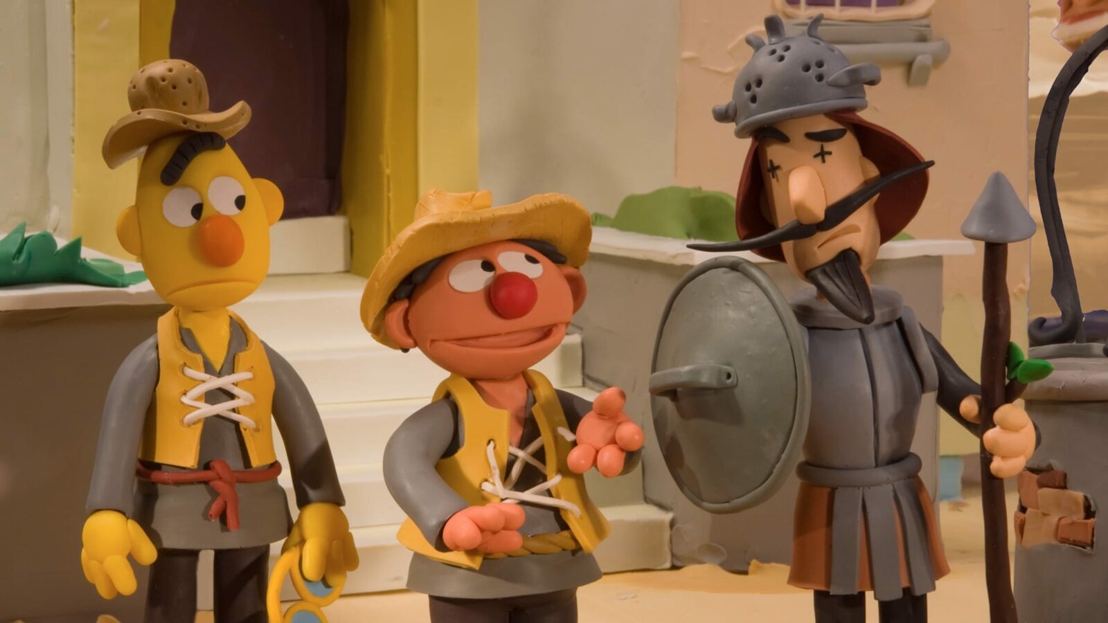 Der VogelfängerErnie und Bert sind die Knappen des berühmten Ritters Donnie Quichote.Bild: © NDR/Sesameworkshop