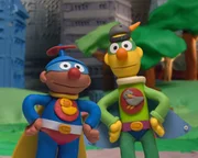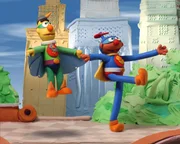 Ernie und Bert als SuperheldenErnie (re.) und Bert (li.) wollen als Superhelden ihre übernatürlichen Fähigkeiten zum Einsatz bringen.Bild: © NDR/Sesameworkshop