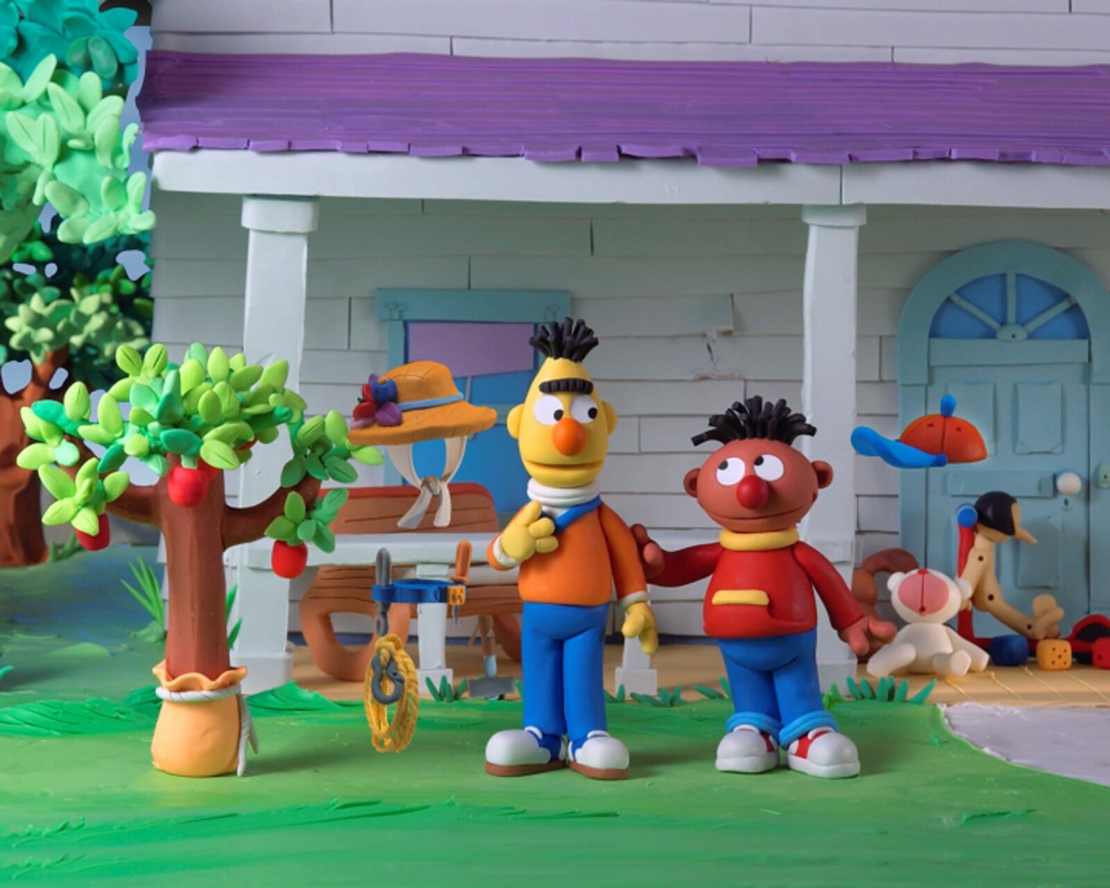 Ernie und Bert im Land der UnsichtbarenZu Besuch bei Freunden werden Ernie und Bert in ein merkwürdiges Abenteuer verstrickt: Sie sollen auf die unsichtbare Schwester ihres Freundes aufpassen.Bild: © NDR/Sesameworkshop