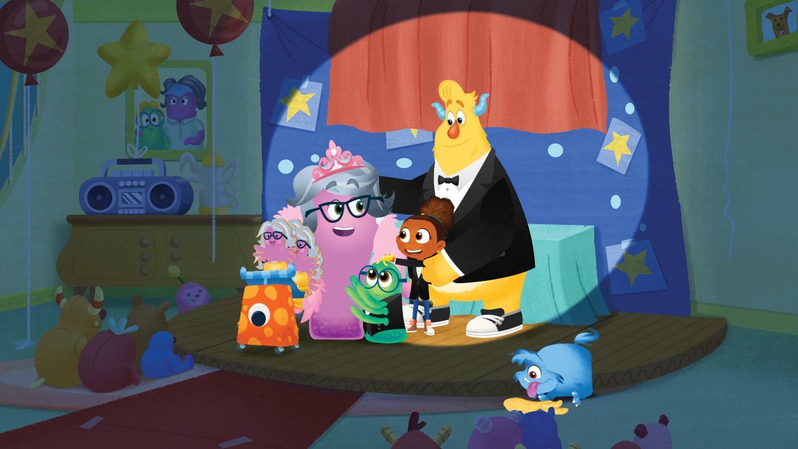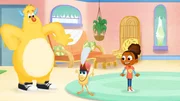 Tanz den Simon!Tillie freut sich, dass die Monstersitter bei ihr sind.Bild: © KiKA/Nelvana