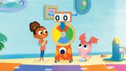 SonderzustellungEsme moderiert das „Hilfe bitte“ Spiel.Bild: © KiKA/Nelvana