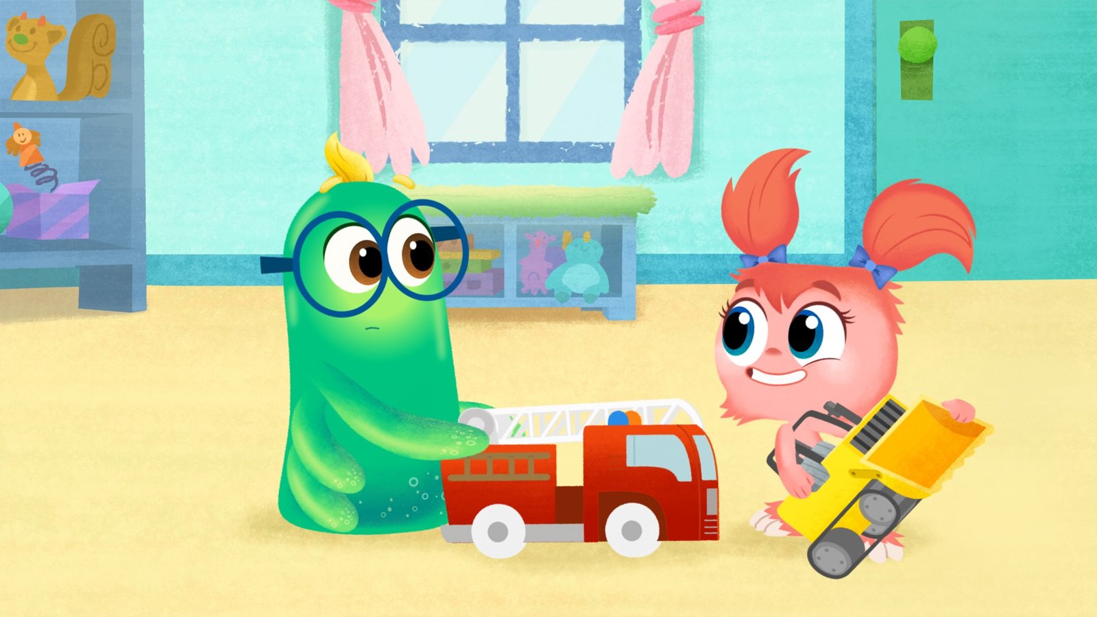 Teilen oder nicht teilenTillie hat es nicht gerne, dass Simon mit ihren Autos spielt.Bild: © KiKA/Nelvana