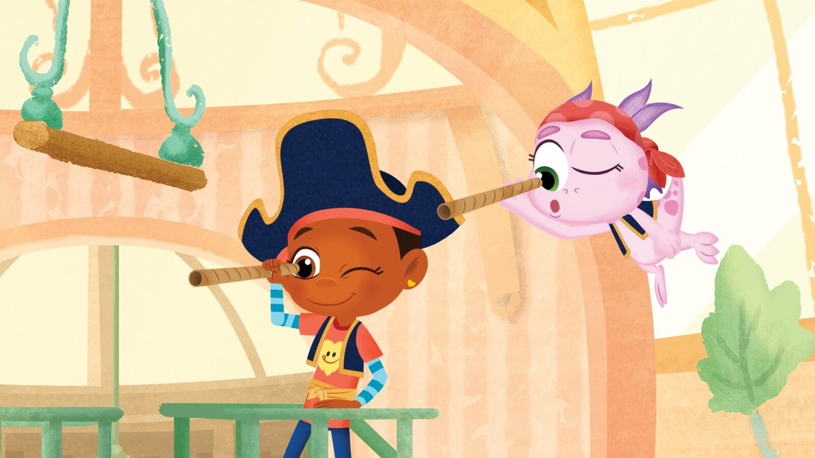 Ritter im GewitterDie Piratinnen Esme und Fanny behalten die Lage im Auge.Bild: © KiKA/Nelvana