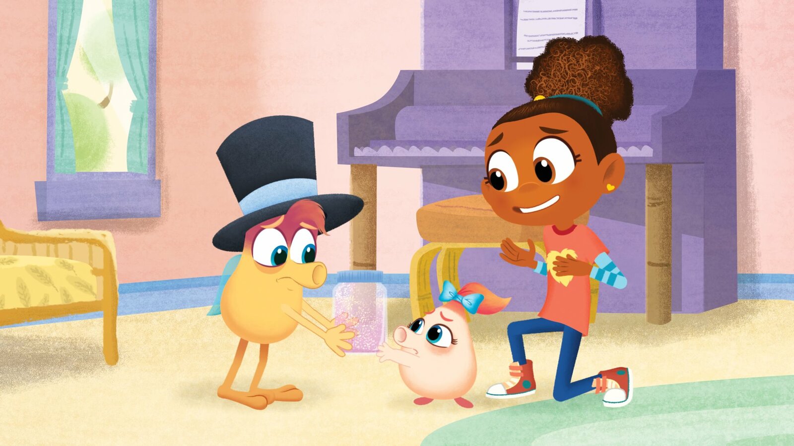 Biesterbohnen und MonsterpilzeMiep, miep - Tillie begrüßt ihre Monstersitterin.Bild: © KiKA/Nelvana