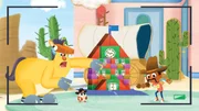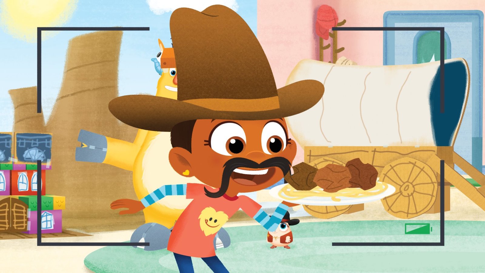Museums-StressDer Blick durch die Kamera: Pferd Roy, Cowgirl Fee und Spaghetti-Bandit Esme sind auf Position.Bild: © KiKA/Nelvana