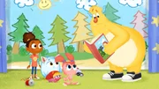 Biesterbohnen und MonsterpilzeEsme und Roy passen auf die Hoozelwoo-Kinder auf.Bild: © KiKA/Nelvana