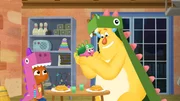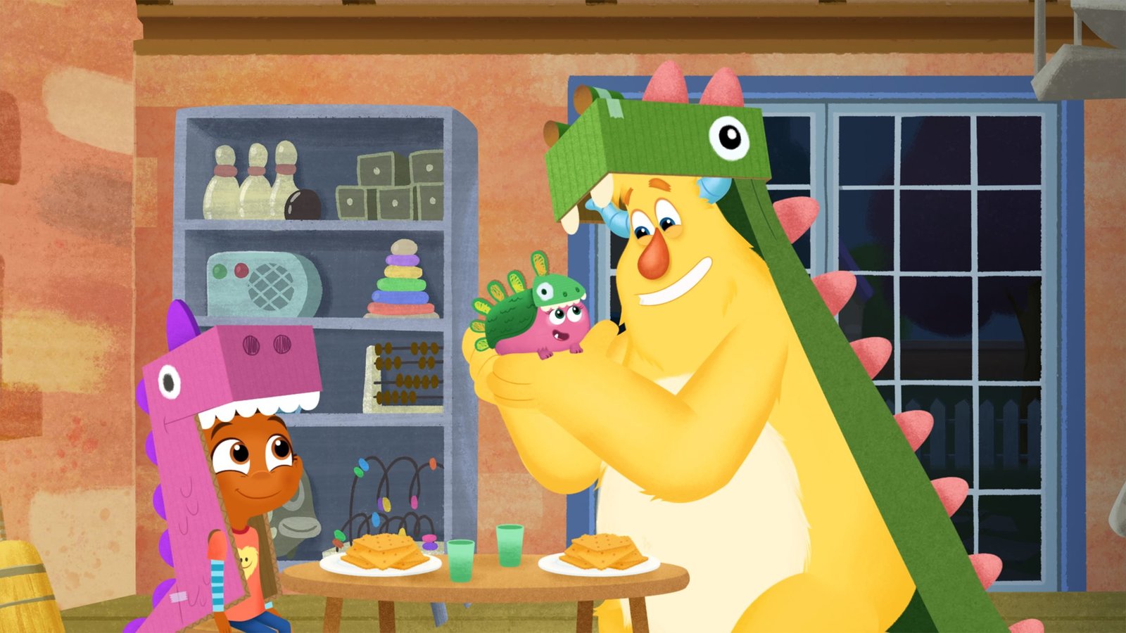 Teilen oder nicht teilenZuhause wartet auf Esme und Roy ein Dumplingosaurus.Bild: © KiKA/Nelvana