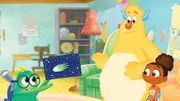 Monster-Spiel-TaktikEsme versucht ein gemeinsames Spiel für die beiden Monsterchen zu finden.Bild: © KiKA/Nelvana