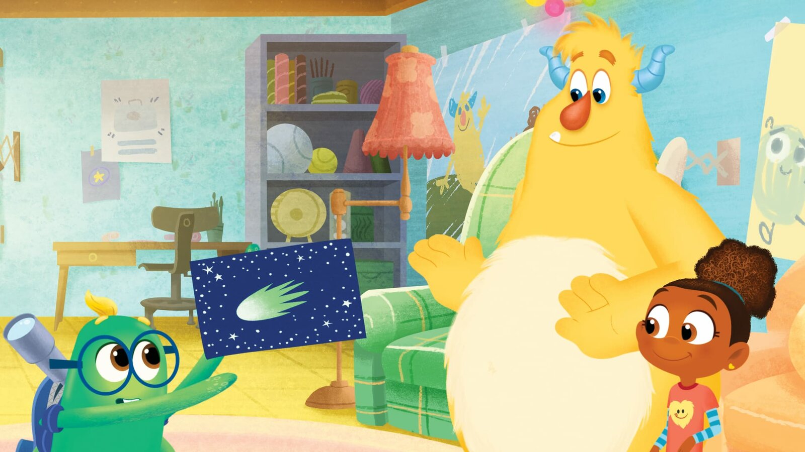 Der Swusel-KometRoy überreicht Esme die Monstersitter-Großartigkeits-Bescheinigung.Bild: © KiKA/Nelvana