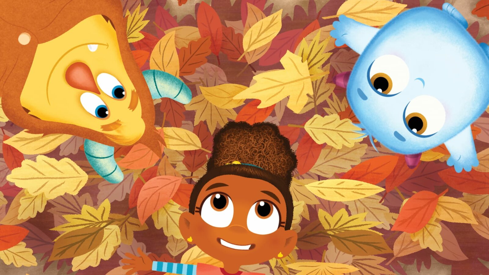 Kinderwagen-RallyeIm Laub zu spielen macht großen und kleinen Monstern Spaß.Bild: © KiKA/Nelvana