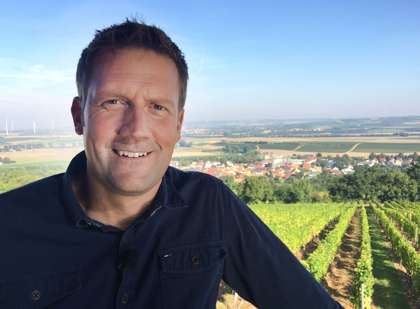 Unterwegs im Weinland RheinhessenJens Hübschen über den rheinhessischen Weinbergen .Bild: © SWR/Rolf Stephan