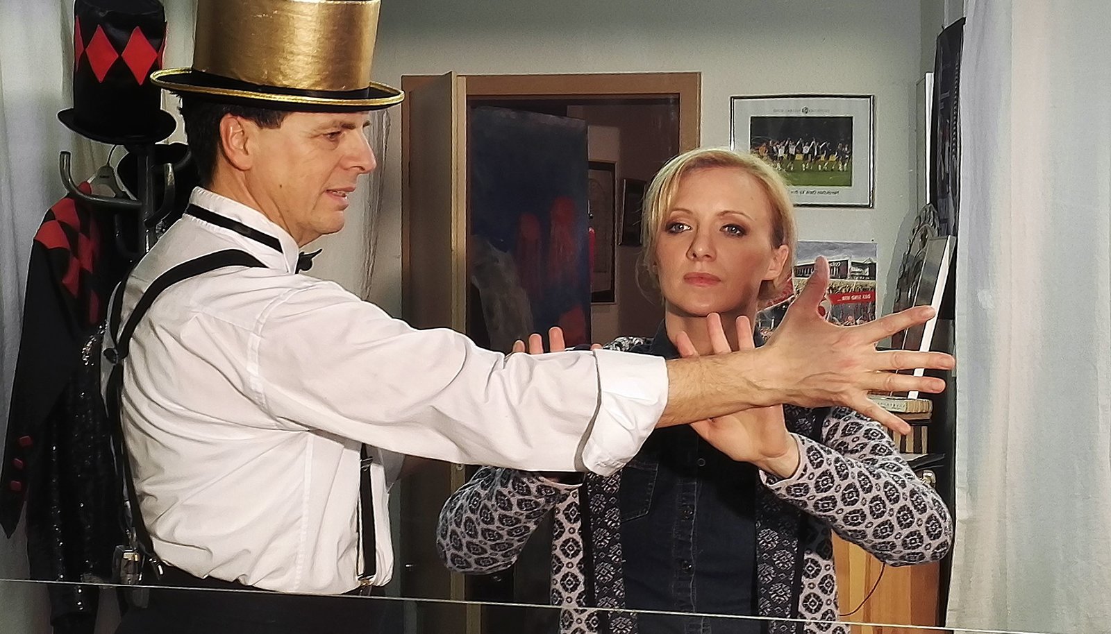 Unterwegs im WonnegauAnna Lena Dörr beim Pantomimenunterricht mit dem Profi-Pantomimen und Entertainer Mister HE alias Jürgen Höhn aus Gundheim.Bild: © SWR/Daniel Borger
