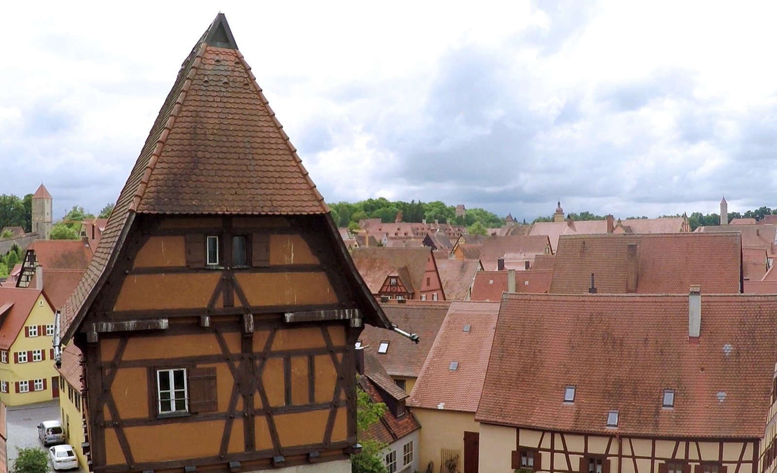Unterwegs an der bayerischen GrenzeDinkelsbühl - Östliche Stadtmauer mit dem Bäuerlinsturm - Charakteristisch das Fachwerkgeschoss und das steil abgewalmte Satteldach (16. Jh.). Namensgeber war der Turmwächter und Gerber Hans Bäuerlin.Bild: © SWR