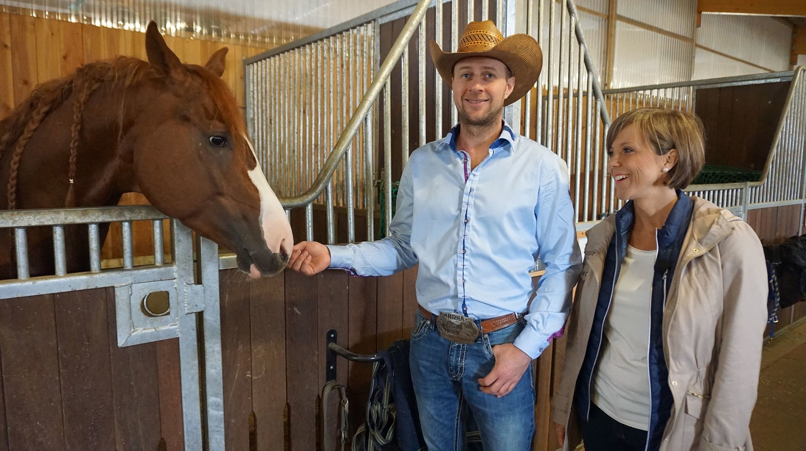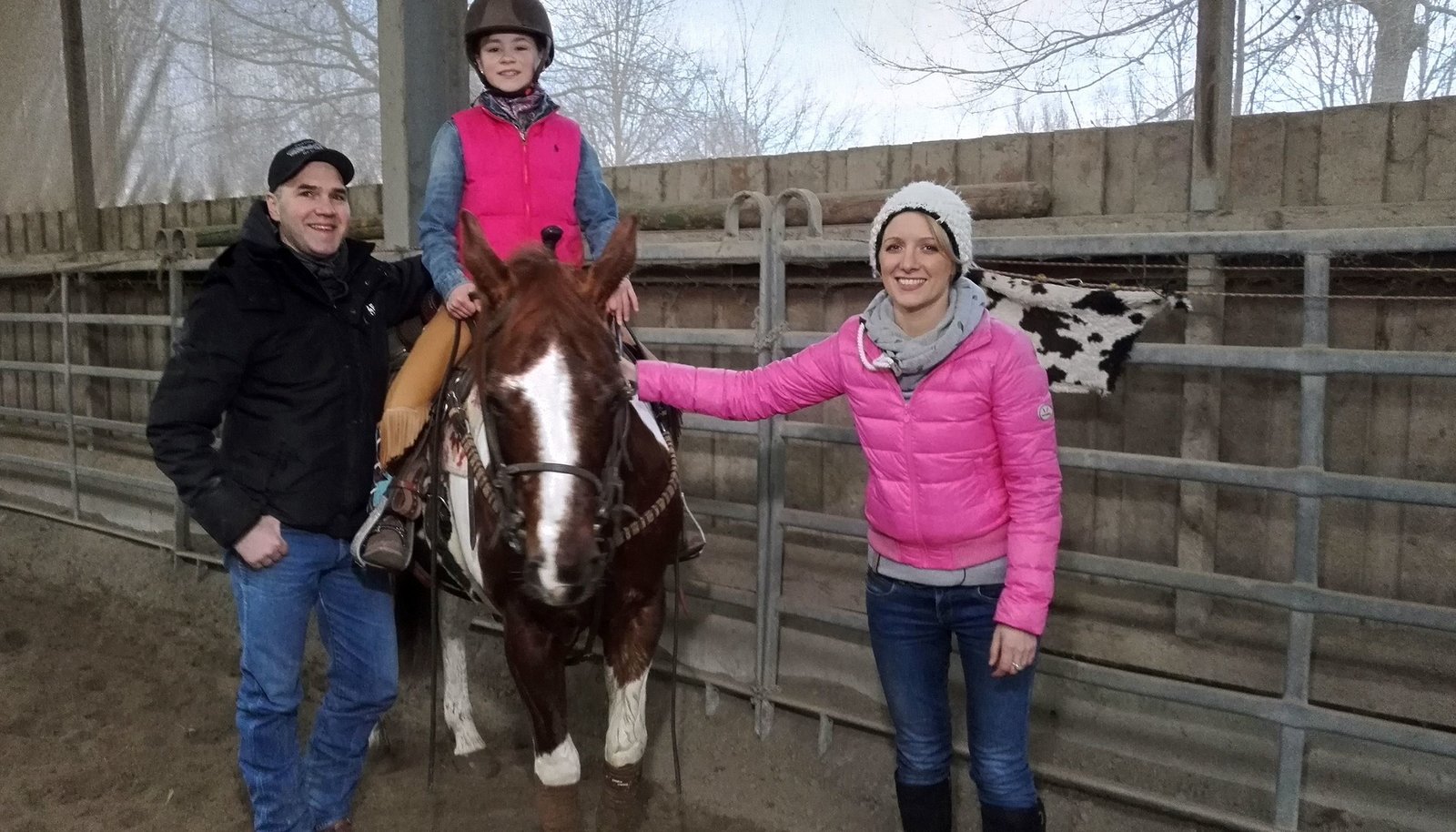 Unterwegs im WonnegauAnna Lena Dörr mit der amtierenden Europameisterin im Cowhorsing 2015 , Leni Bartmann (10 J.) und ihrem Vater Mark auf dessen "Vineyardranch" in Osthofen (Cowhorsing ist eine Disziplin oder "Spielart" des Westernreitens).Bild: © SWR/Daniel Borger