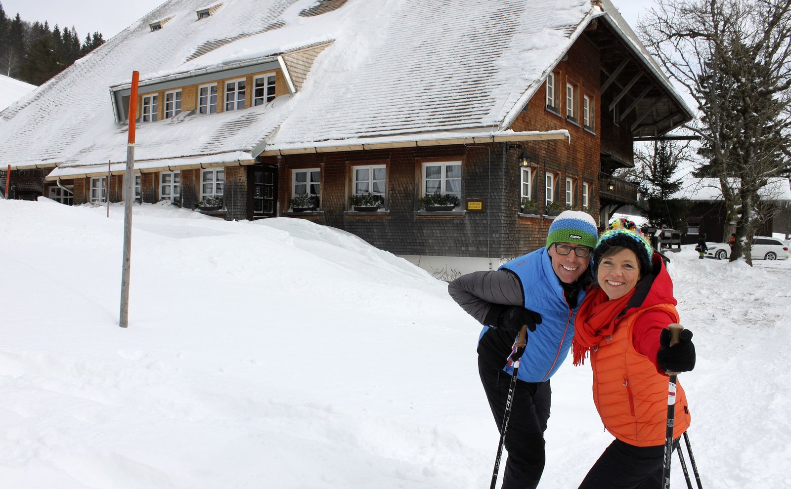Winter im SchwarzwaldHansy Vogt und Annette Krause vor dem Raimartihof.Bild: © SWR/Jochen Schmid