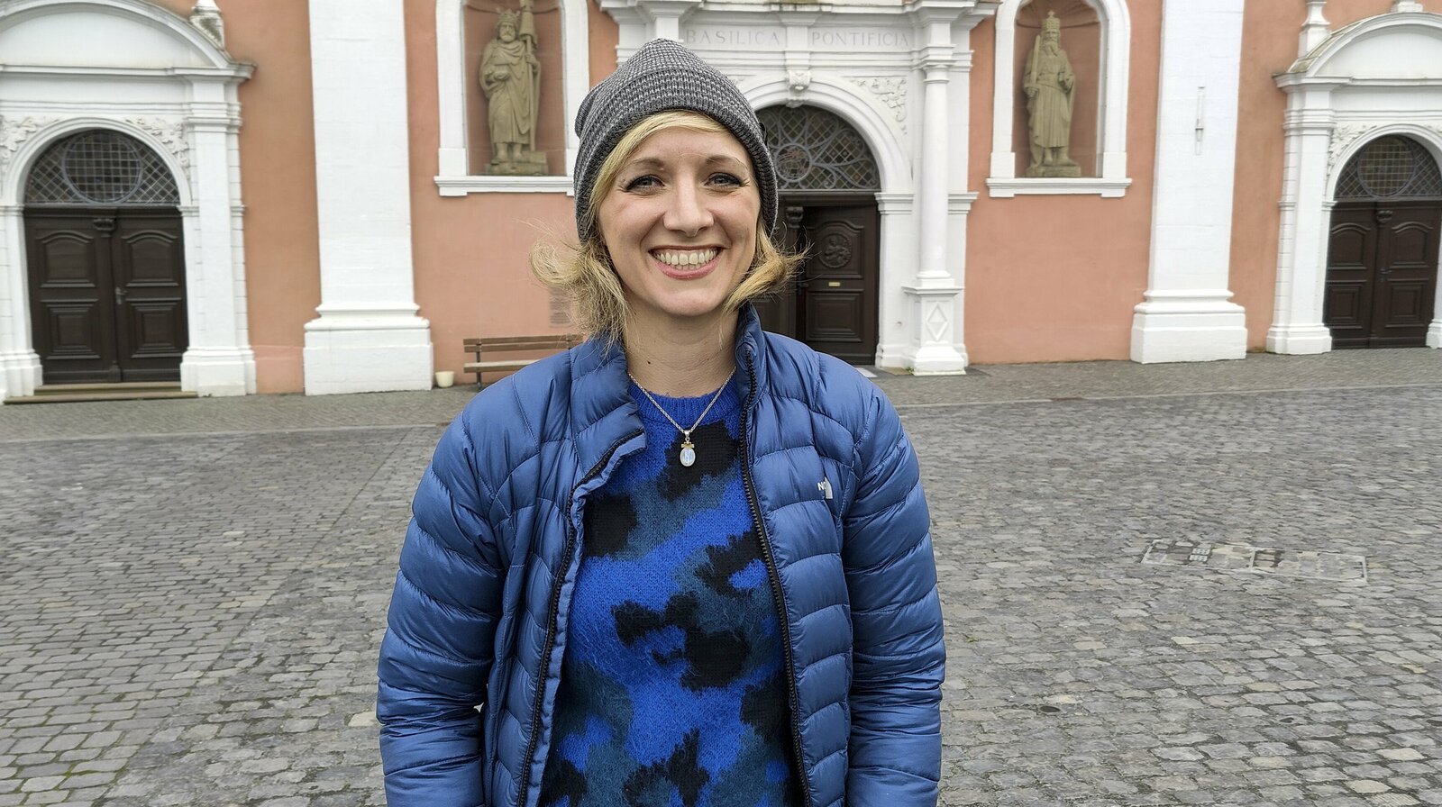 Gottes geheimnisvolle HäuserAnna-Lena Dörr vor der Prümer Basilika.Bild: © SWR/Thomas Keck
