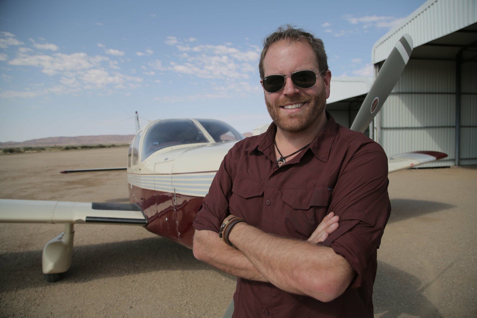 Auf der Suche nach der Weltkriegs-PilotinJosh Gates sitting in a P-51 Mustang with his headset on in Southern California.Bild: © Discovery Channel / Discovery Communications / Ben Boyle