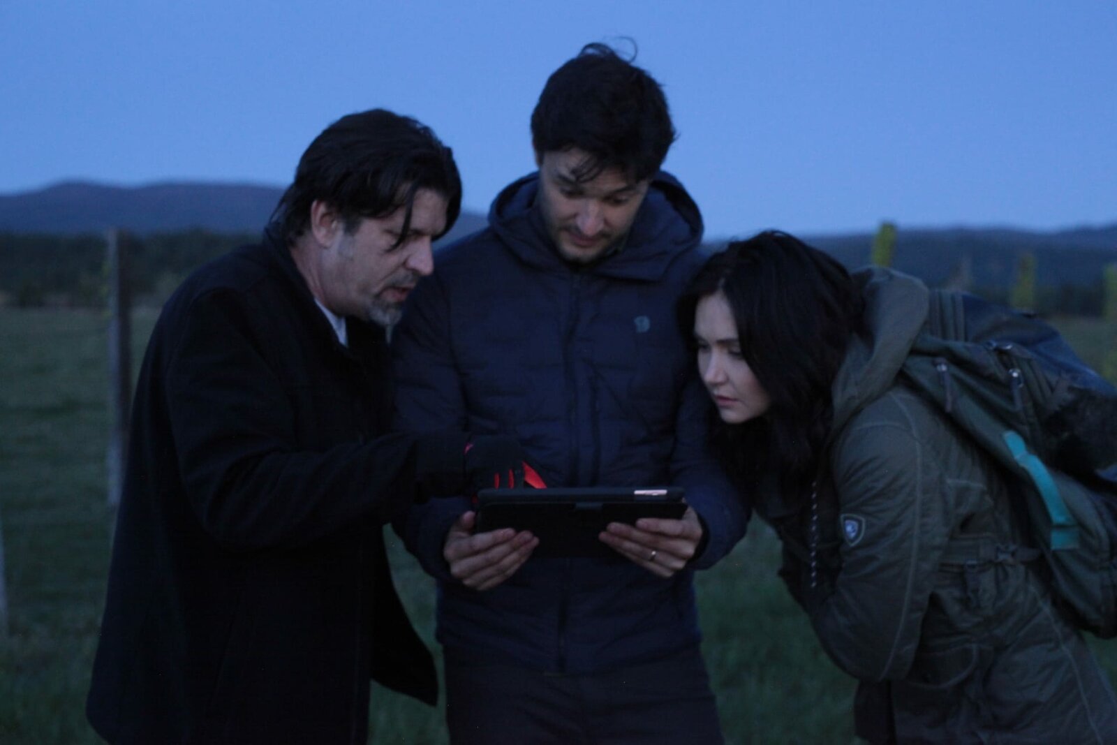 Der Berg der UFOsHosts Jessica (r.) and Phil (m.) examine evidence with Jimmy Church (l.).Bild: © Discovery Channel / Discovery Communications, LLC