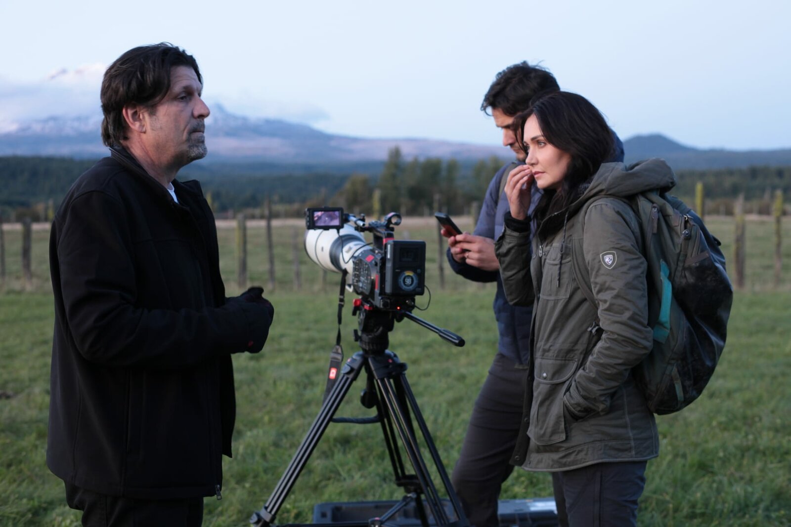 Der Berg der UFOsHosts Jessica (r.) and Phil (m.) meet with UFO expert Jimmy Church (l.).Bild: © Discovery Channel / Discovery Communications, LLC