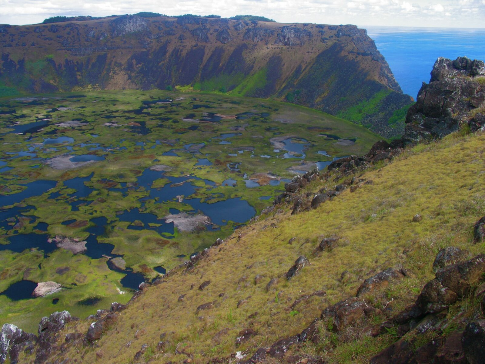 OSTERINSEL, CHILE: Die vulkanische Caldera bei Orongo. (Bildnachweis © Andrew Pulley / NGT)Bild: © Copyright © The National Geographic Channel.