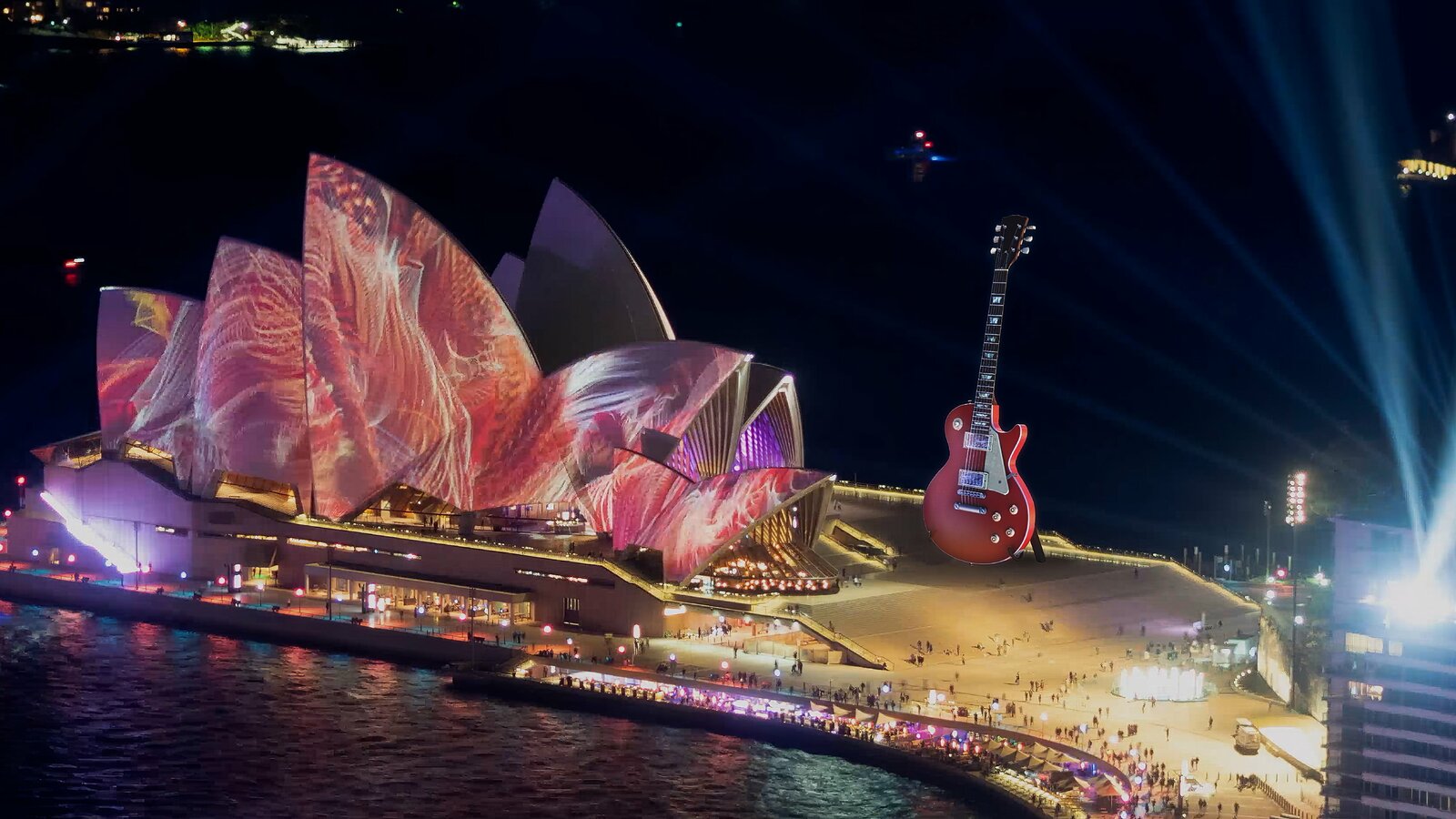 Elektrische GitarrenCGI image - guitar larger than the Sydney Opera House.Bild: © Copyright © The National Geographic Channel.
