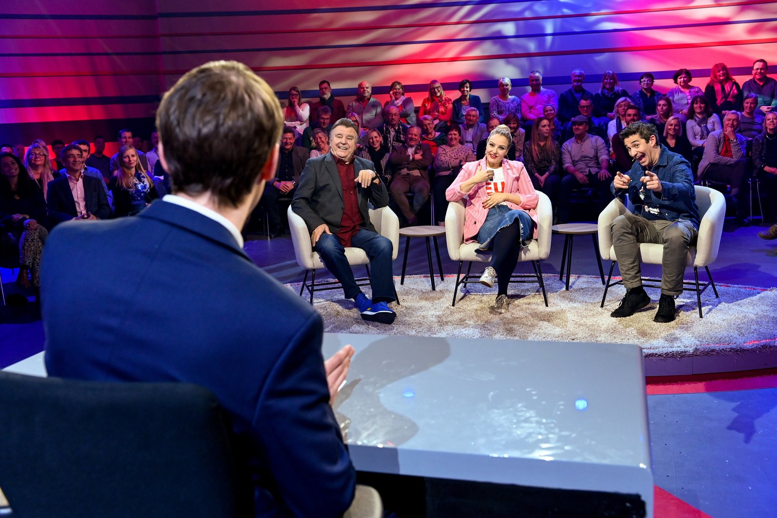 Folge 6Moderator Clemens Maria Schreiner, Lukas Resetarits, Verena Scheitz und Omar Sarsam.Bild: © ORF 1