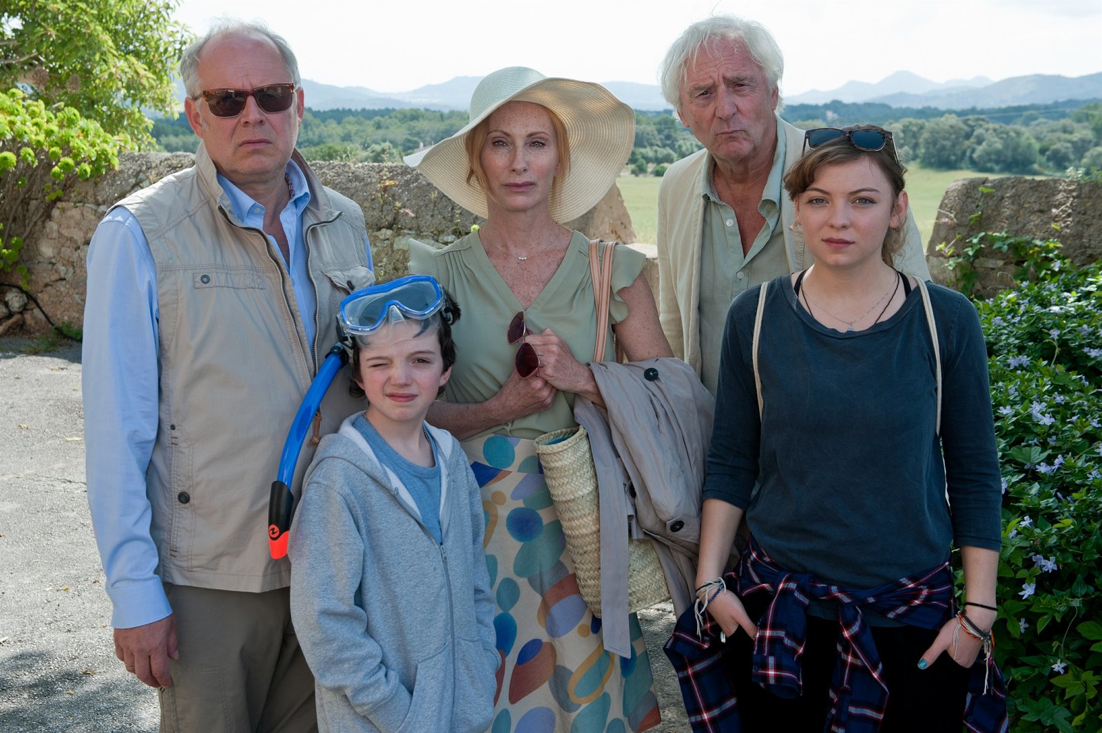 Von Erholung war nie die RedeFamilie Bundschuh aus Berlin mit Gerald (Axel Milberg, l.), Gundula (Andrea Sawatzki, M.), Edgar (Günther M. Halmer, 2.v.r.), Rolfi (Claudio Schulte, 2.v.l.) und Ricarda (Amber Marie Bongard, r.). in Verbindung mit der Sendung bei Nennung ZDF/Britta KrehlBild: © ZDF/Britta Krehl