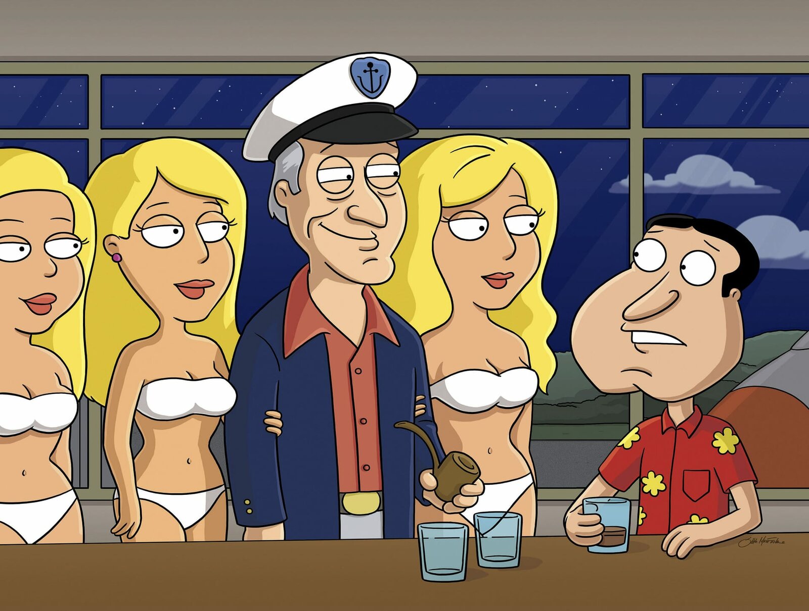 Lizenz zum FliegenFAMILY GUY: Quagmire receives advice from his idol, Hugh Hefner, which leads him to save the day in the ŇAirport Ô07Ó episode of FAMILY GUY Sunday, March 4 (9:00-9:30 PM ET/PT) on FOX.Ę FAMILY GUY Ş and © 2007TCFFC ALL RIGHTS RESERVED.323Bild: © 2007 FOX BROADCASTING