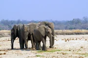 Tiere im Luangwa-TalEine Herde Elefanten gräbt in einem ausgetrockneten Flussbett nach Grundwasser.Bild: © arte