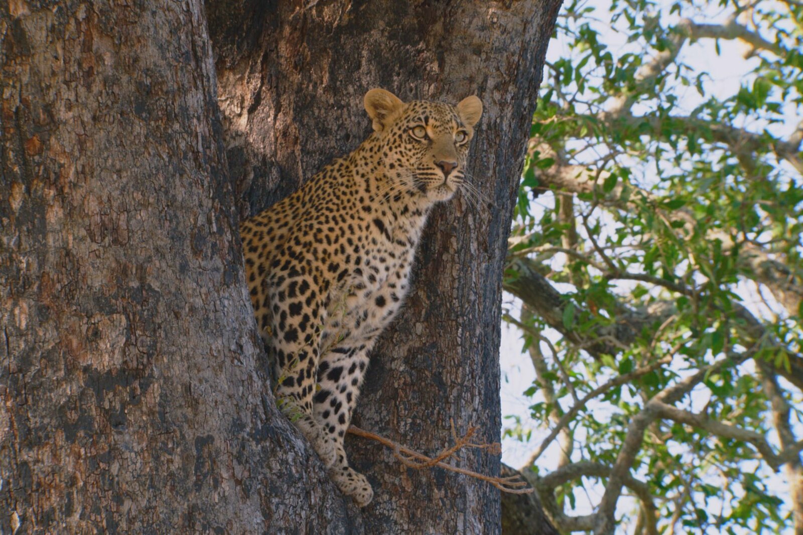 Tiere im MalaMala-ReservatLeoparden verbringen den Tag gerne mal auf Bäumen und nutzen den erhöhten Platz auch als Ansitz für die Jagd.Bild: © ZDF und Peter Lamberti
