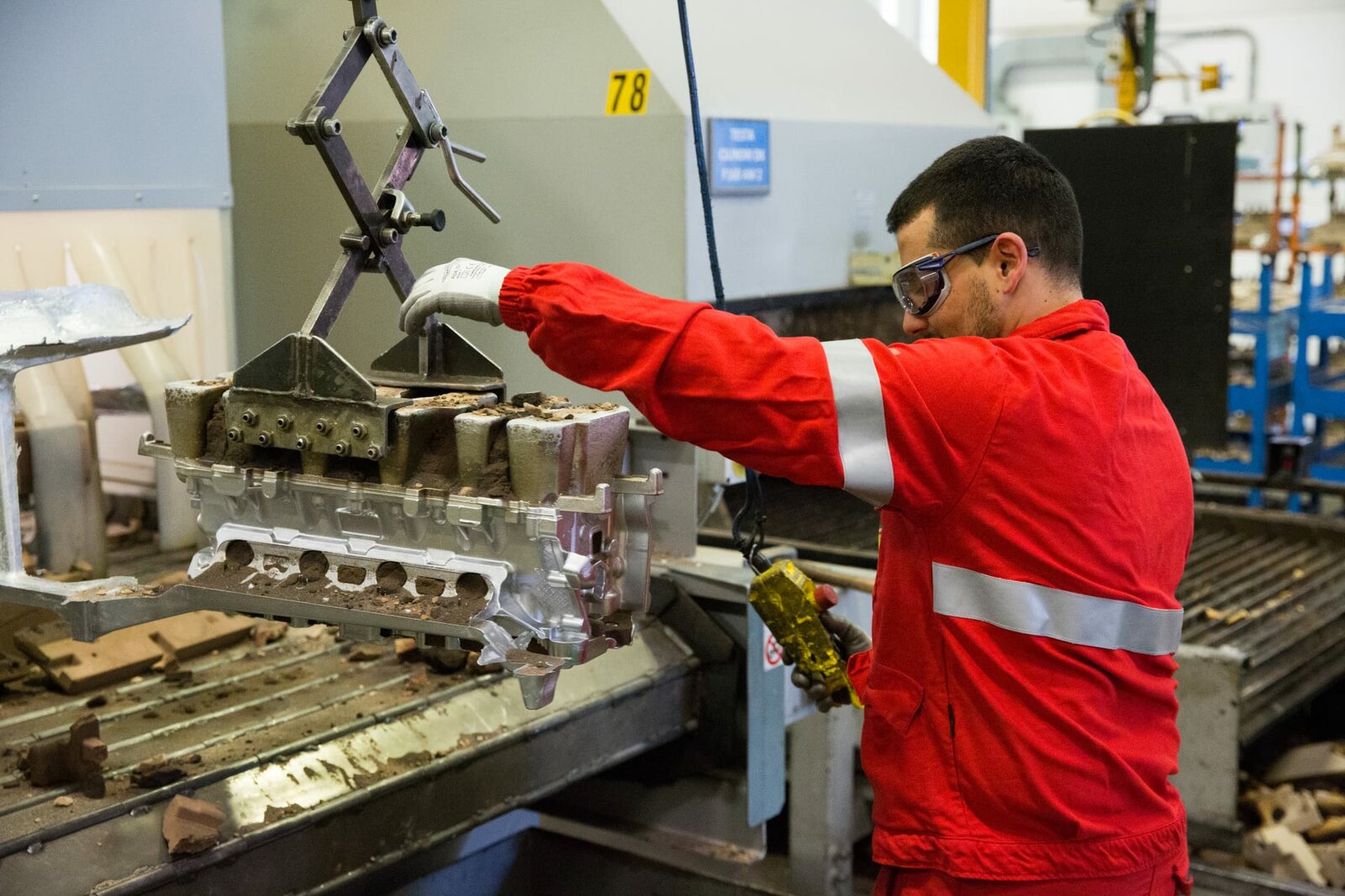 Ferrari PortofinoA worker moves the completed sand casted engine. (Cry Havoc Productions/Dylan Weiss)Bild: © Dylan Weiss / Cry Havoc Productions / Cry Havoc Productions/Dylan Weiss