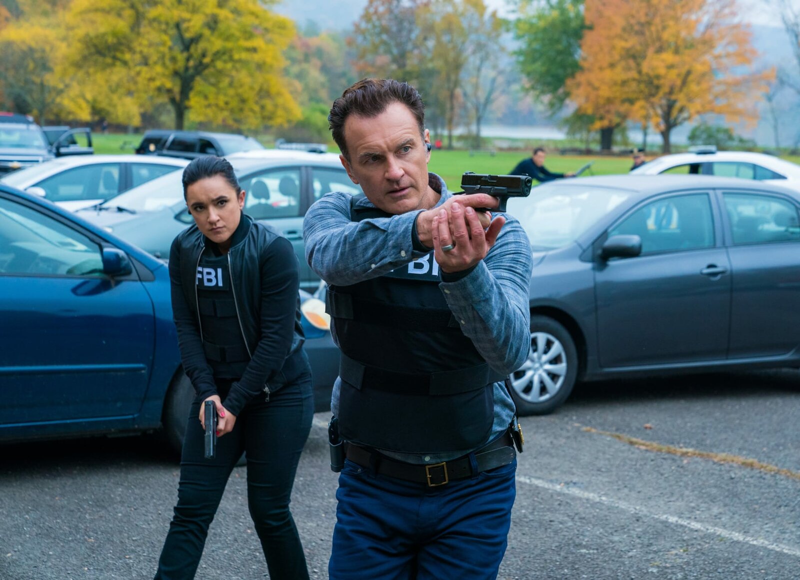 Der Eins-Null-KillerJess LaCroix (Julian McMahon, l.); Sarah Allen (Jen Landon, r.)Bild: © 2020 CBS Broadcasting Inc. All Rights Reserved. / Mark Schafer Lizenzbild frei
