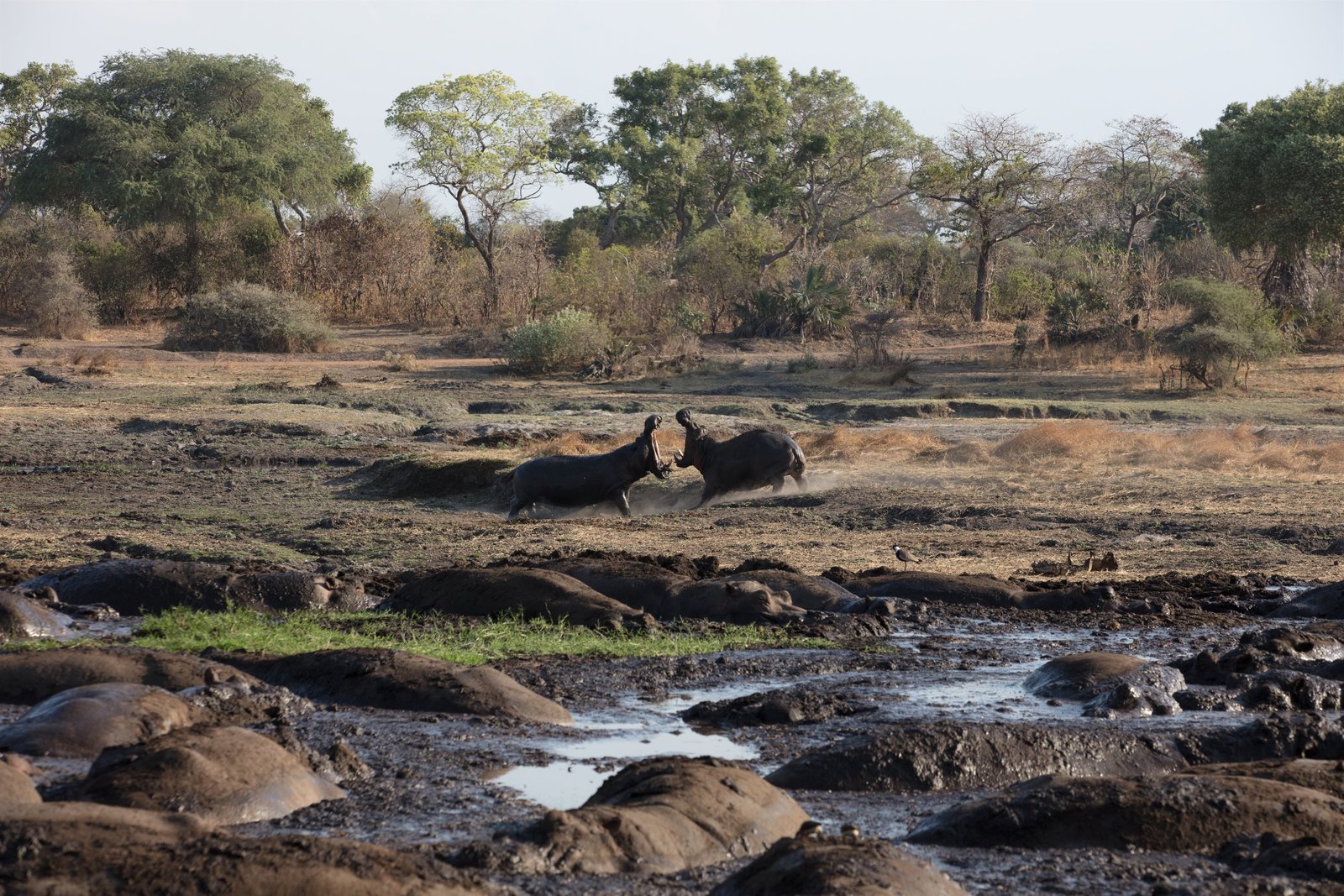 BergeTANZANIA - 2 bull hippos fight for space in Katavi National Park. During the dry season, their pool of water shrinks and fights break out as the hippos are forced closer and closer together.Bild: © National Geographic / Tom Greenhalgh