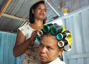 VenezuelaFernweh Karibik Folge 5 Ingrid Chimenez Pena (l.): Die alleinerziehende Mutter Ingrid Chimenez Pena arbeitet als Putzfrau und verdient sich mit einem eigenen Coiffeur-Salon einen finanziellen Zustupf.Bild: © SRF