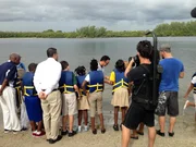 Fische zum AnfassenLocation: Boca Raton, FL, USA: Students from Galaxy Elementary wait patiently before fishing for specimens to put in their school's new aquarium.Bild: © Sharp Entertainment / National Geographic Channels