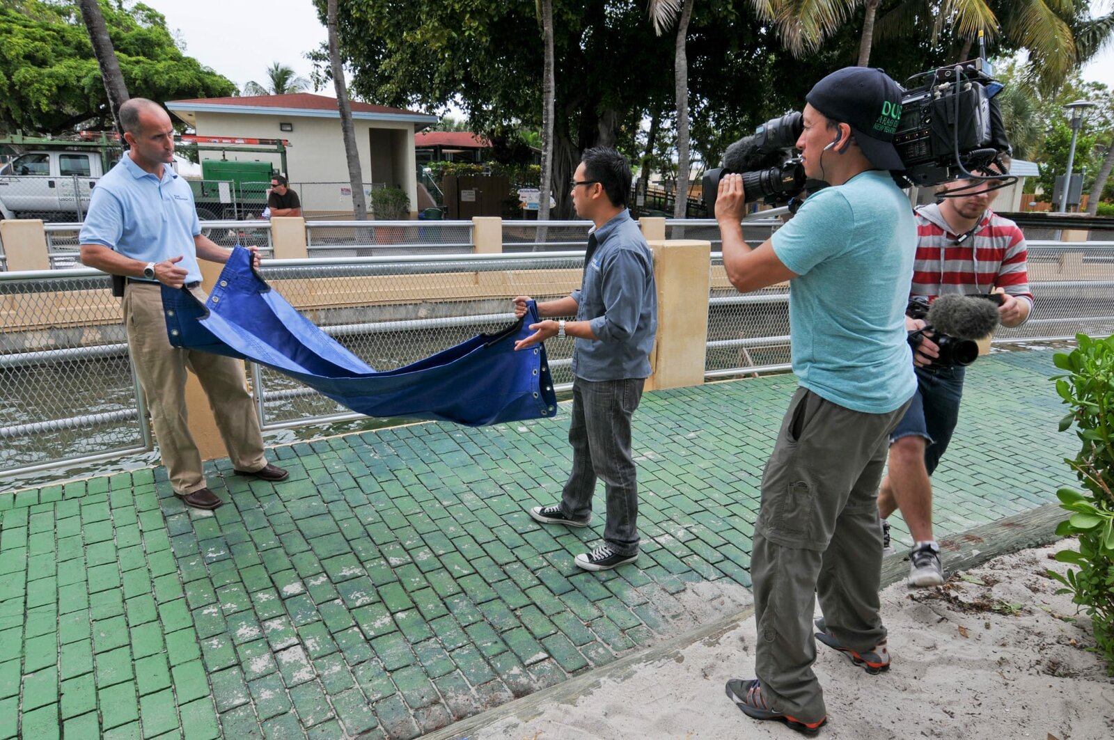 Aus alt mach neuFrancis and Trevor outside Seaquarium with two crew members filmingBild: © Christina Mendenhall