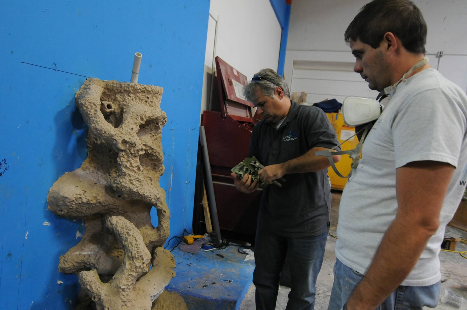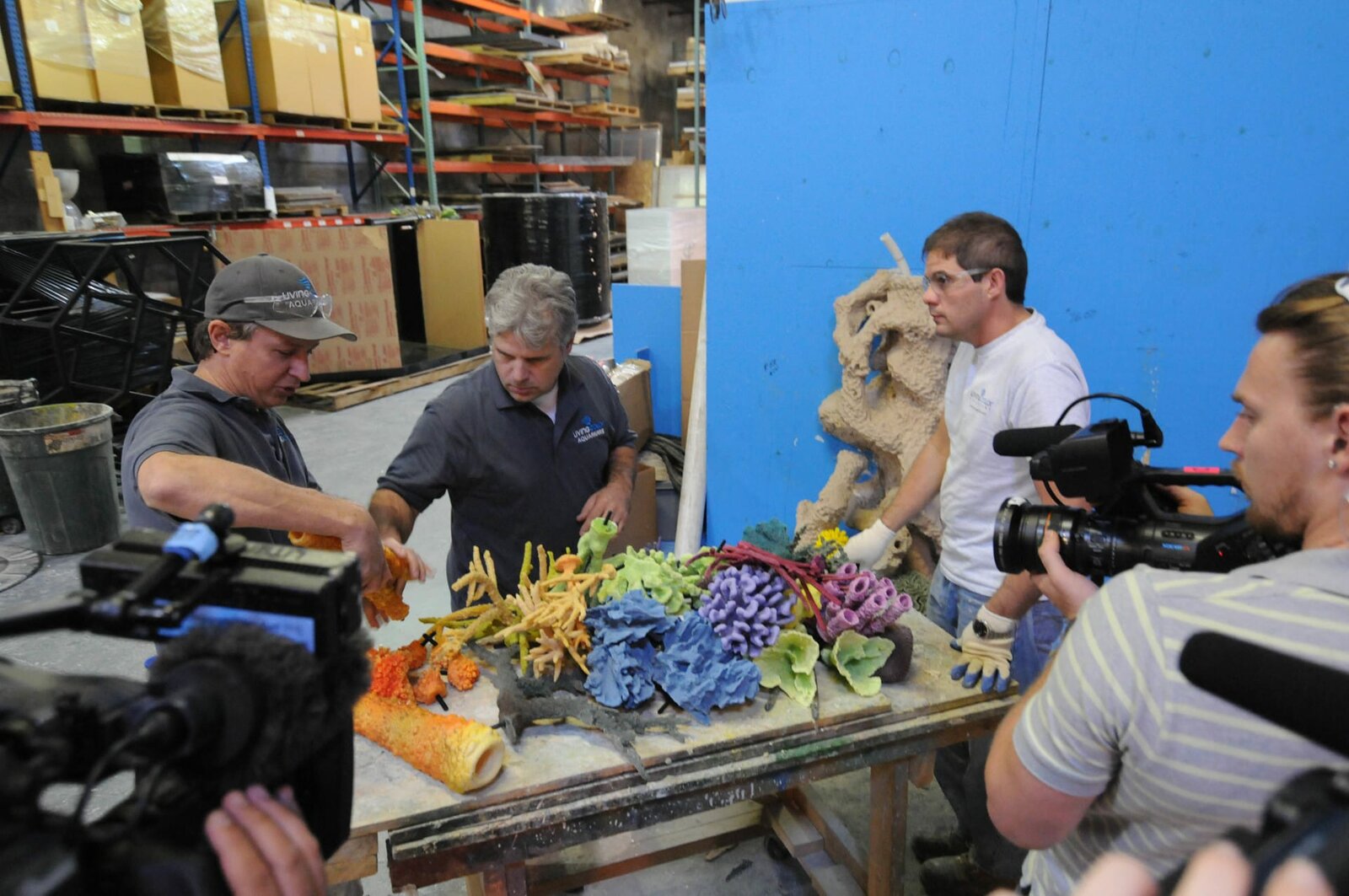 Das schönste Aquarium der WeltFort Lauderdale, FL, USA: Designer Jose carves yet another element of the Jolly Rancher-themed tank for Hershey. (Photo credit: © National Geographic Channels / Sara Hayworth)Bild: © National Geographic