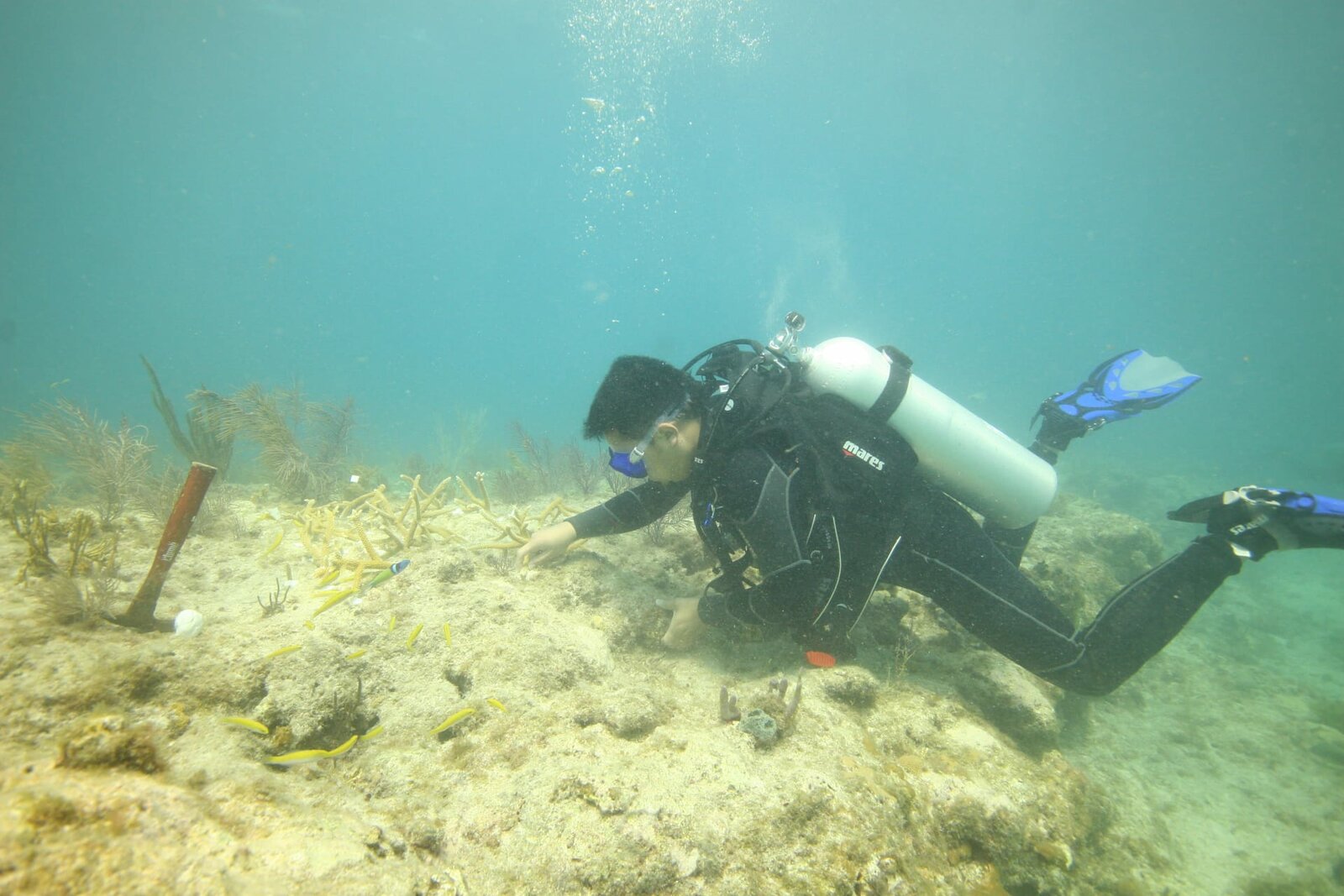 Rettung des OktopusBTS - Pacho picking out corals for the reef.Bild: © Christina Mendenhall