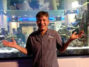 Das schönste Aquarium der WeltFort Lauderdale, FL, USA: Designer Jose Blanco poses in front of his latest project: the Ocean Manor hotel tank. (Photo credit: © National Geographic Channels / Sara Hayworth)Bild: © National Geographic