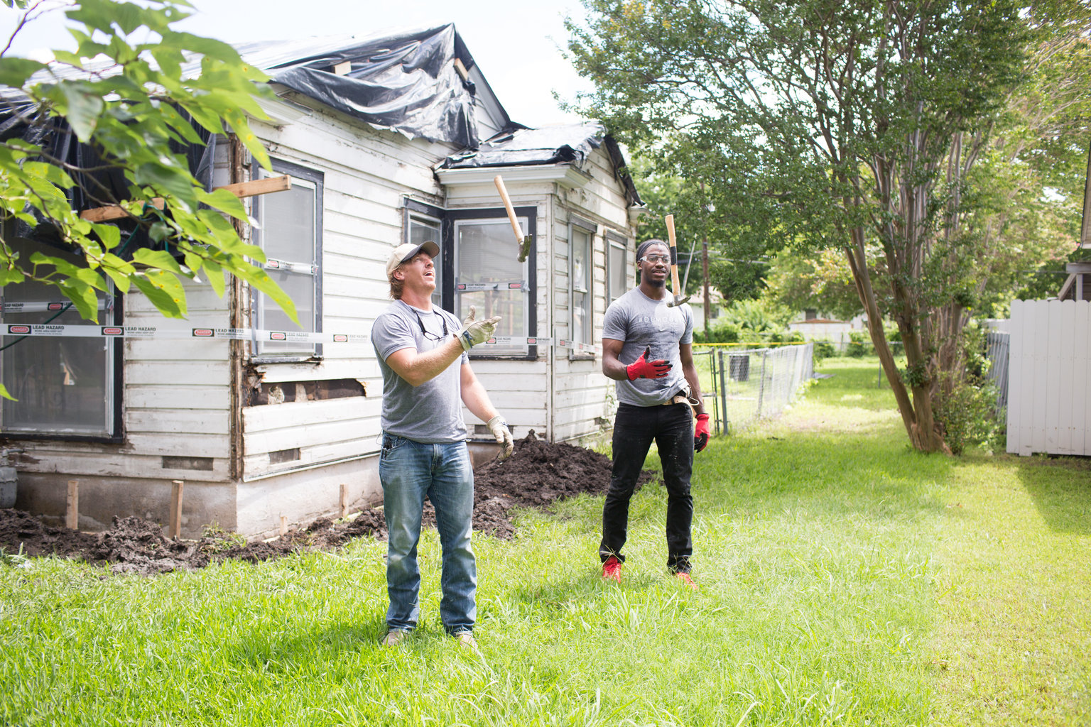 Das Überraschungs-MakeoverChip (l.) bekommt bei den Renovierungsarbeiten für einen Vietnam Veteranen ganz besondere Hilfe - nämlich von Football-Legende Robert Griffin III (r.) ...Bild: © 2016, HGTV/Scripps Networks, LLC. / Rachel Whyte / Rachel Whyte