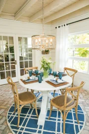 Umzug in KindernäheFarblich scheint die Umwandlung perfekt, denn Kundin Stacies Lieblingsfarben sind weiß und blau. Aber wird auch der extravagante Style des renovierten Hauses und die spezielle Einrichtung überzeugen?Bild: © 2015, HGTV/ Scripps Networks, LLC. All Rights Reserved. Lizenzbild frei